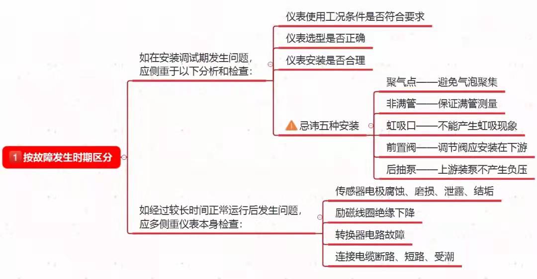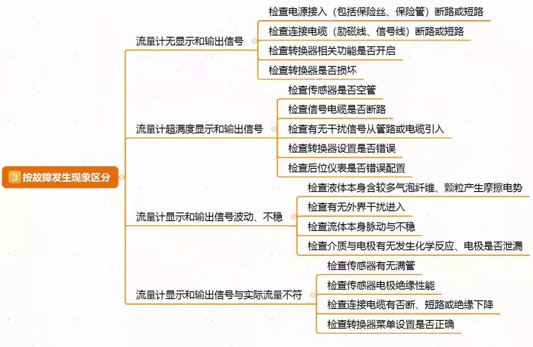 电磁流量计作为测速式流量计,适用于具有导电性液体体积流量的测量。流量传感器测量通道内壁涂有防腐层,在测量通道内无任何固定或可动的节流部件,对流体无压力损失,其输出特性与被测液体的密度、黏度、流动状况无关,可用于测量有腐蚀性或带有固体微粒的流体及浆状物料。但是,它不能测量气体、蒸汽和非导电性性液体,本文对电碰流量计常见故障进行梳理总结,帮助大家加深对电磁流量计的应用和掌握。